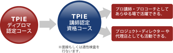 さらに、この修了証を取得しているのみ、TPIE講師を育成し、プロジェクト・ディレクターを育成する「TPIE講師認定コース」の受講が可能になります。「TPIE講師」の認定資格を取得できるとともに、TPIEディプロマ認定コースを自らも開催できる「プロジェクト・ディレクター(PD)」として活動することも可能になります。
